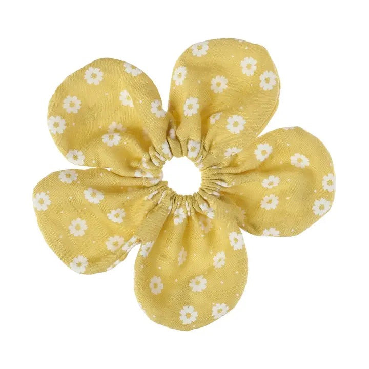 Our super sweet daisy fabric has been used to create the sweetest of petal cut scrunchie. A sweet scrunchie to be worn over a bun or in a pony - the perfect summer accessory!