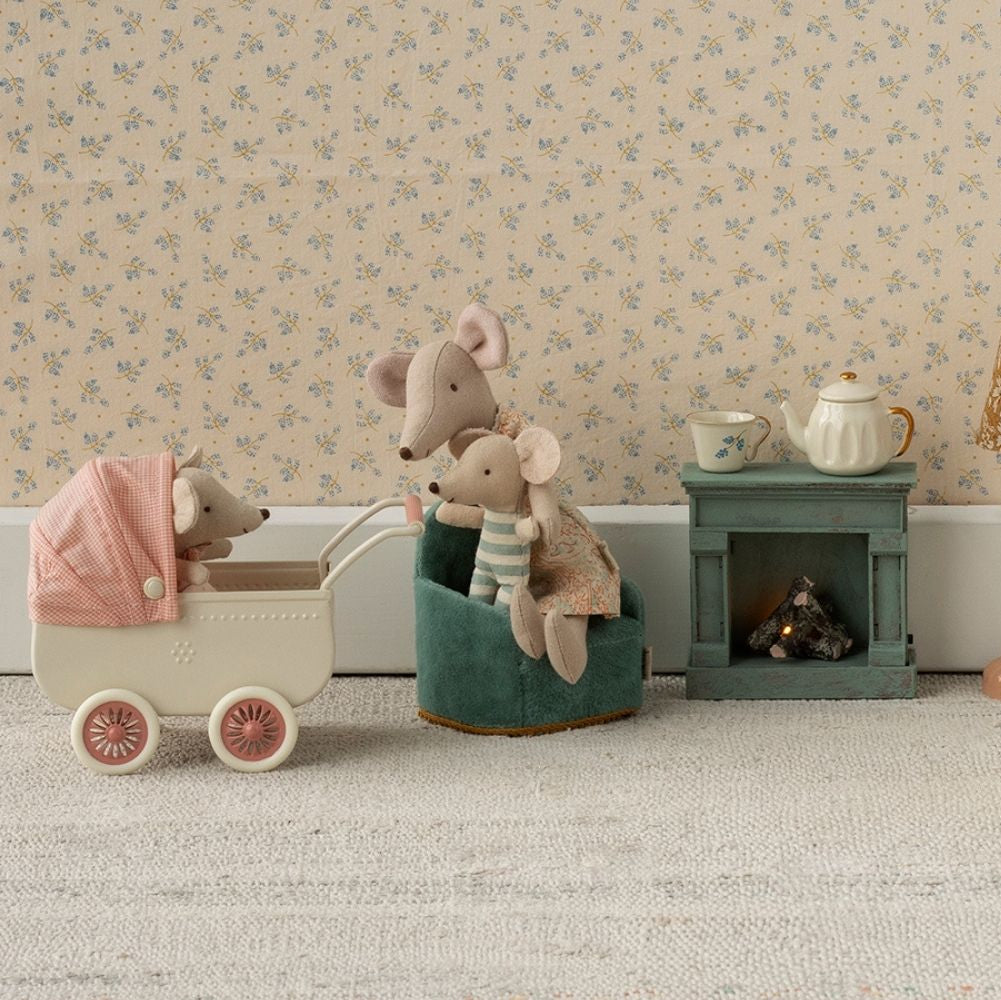 Use this wooden fireplace to warm your miniature home. It has an authentic look and a vintage finish. Remember to turn off when your friends go to bed. The product comes without a battery. You can add a coin cell battery (CR2032).