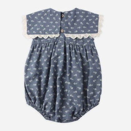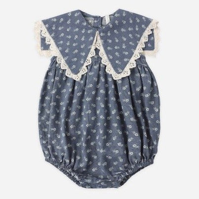 Our Porter Romper is perfect for playtime this spring! Featuring an oversized sailor v collar and elastic leg openings, it's both easy and adorable!