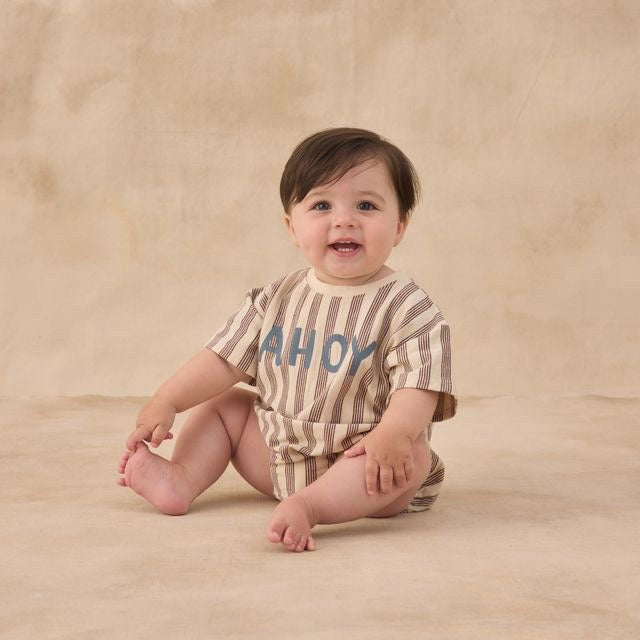Featuring our ‘ahoy' spot print on our 'brown stripe' hue. Say hello to summer in this fun graphic romper.