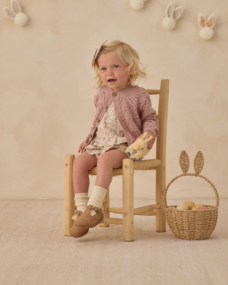 Our Knit Cardigan features a beautiful knit design and coconut buttons for an extra sweet look.