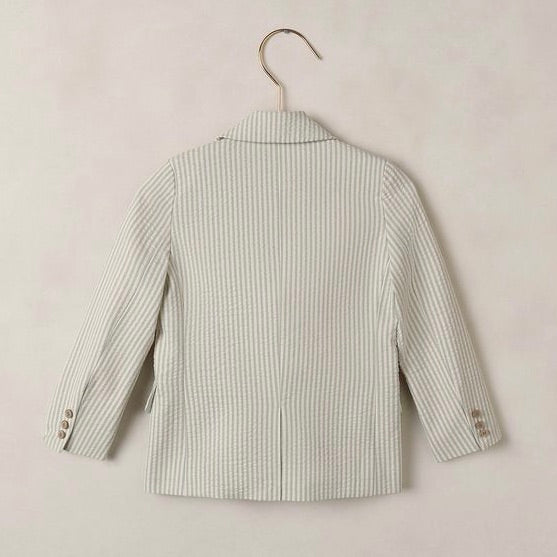 Single-breasted jacket in our soft cotton melange. Features notched lapels, marbled buttons, and pockets at the front, with a vent at the back.