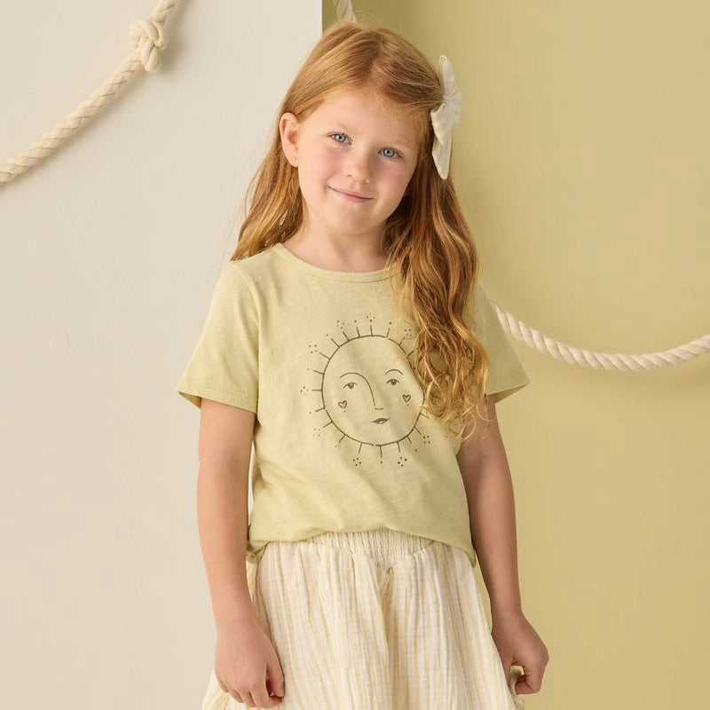 Featuring our 'sun' spot print on our 'citron' hue. A sweet summer look for your littles.