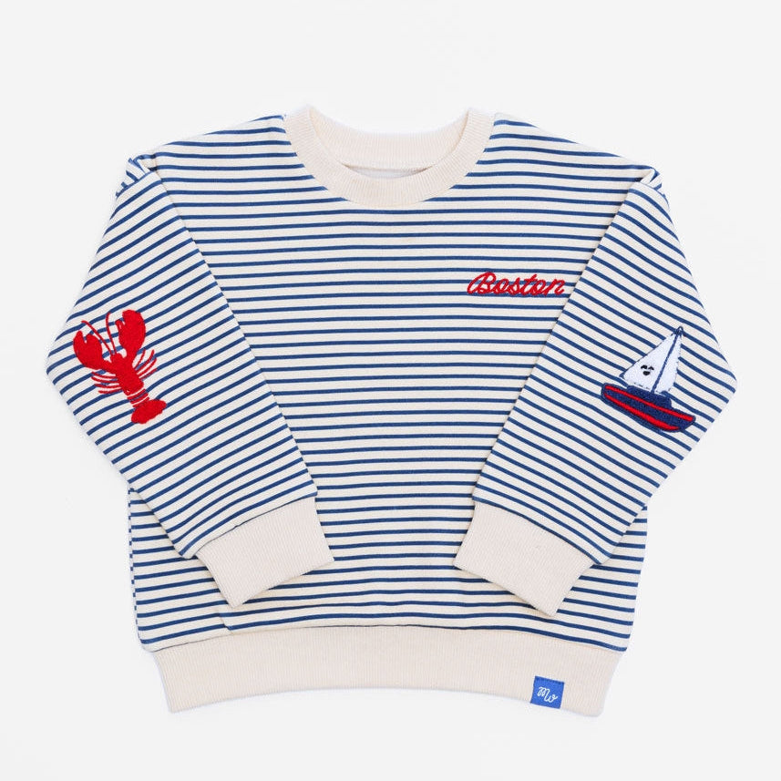 This pile fleece stripe sweatshirt was made with every mini Bostonian in mind!