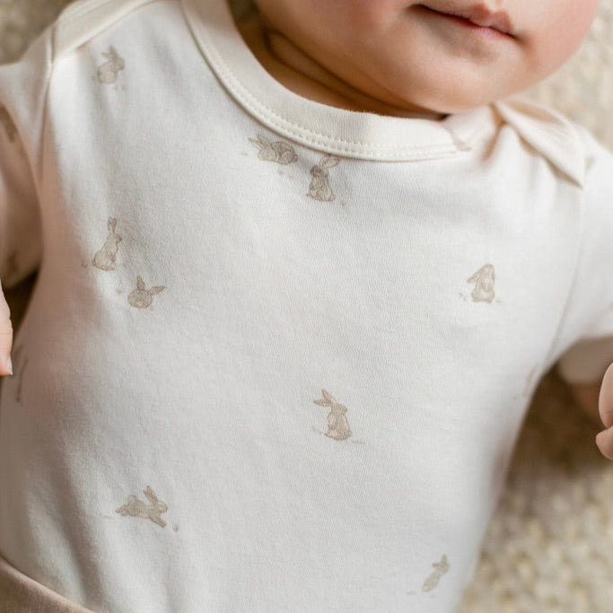 Buttery soft with an adorable print, this organic short sleeve bodysuit is an essential piece for any growing baby. The best part? Each purchase helps a child in need.