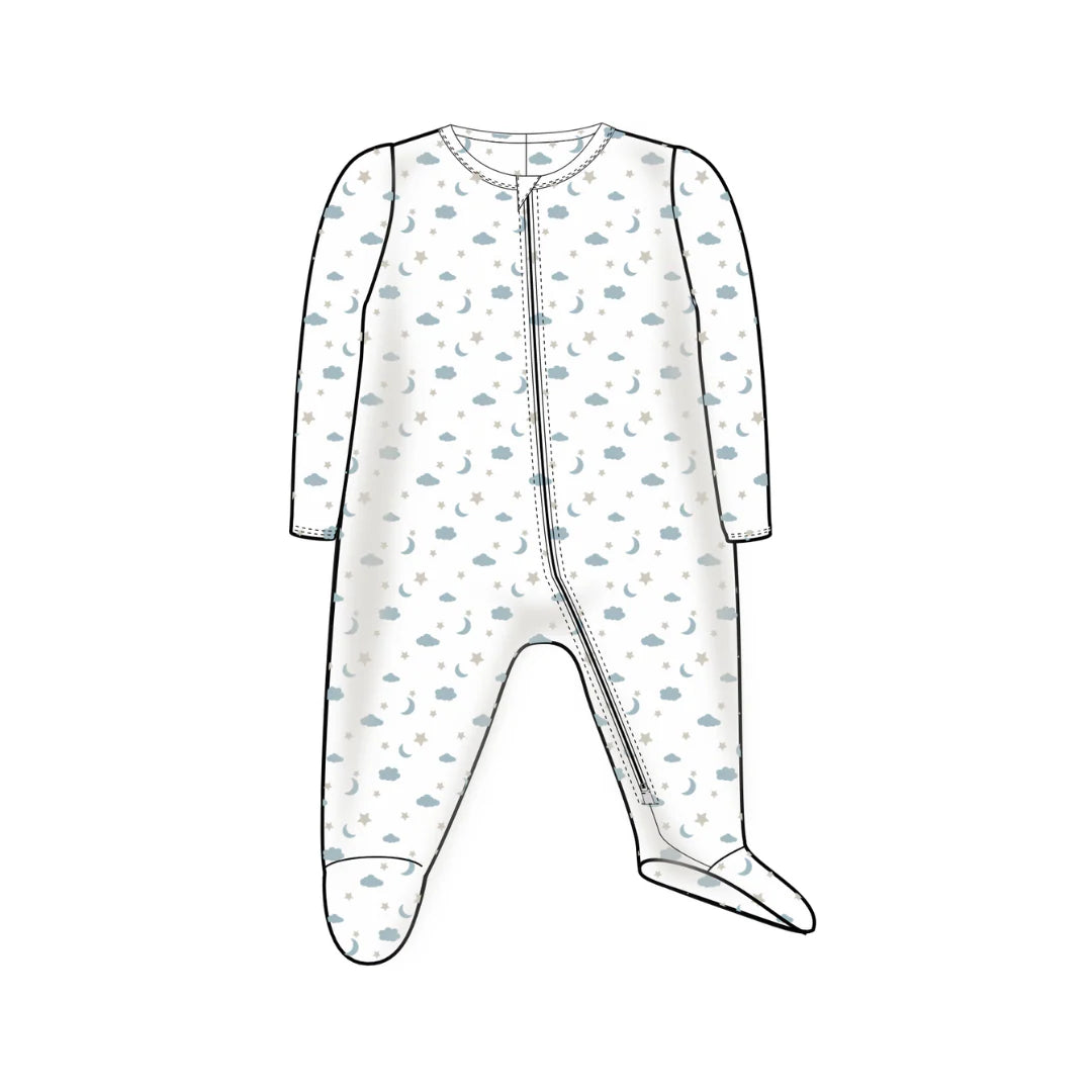 Pima Cotton Zipper Footie || Moon Star Blue