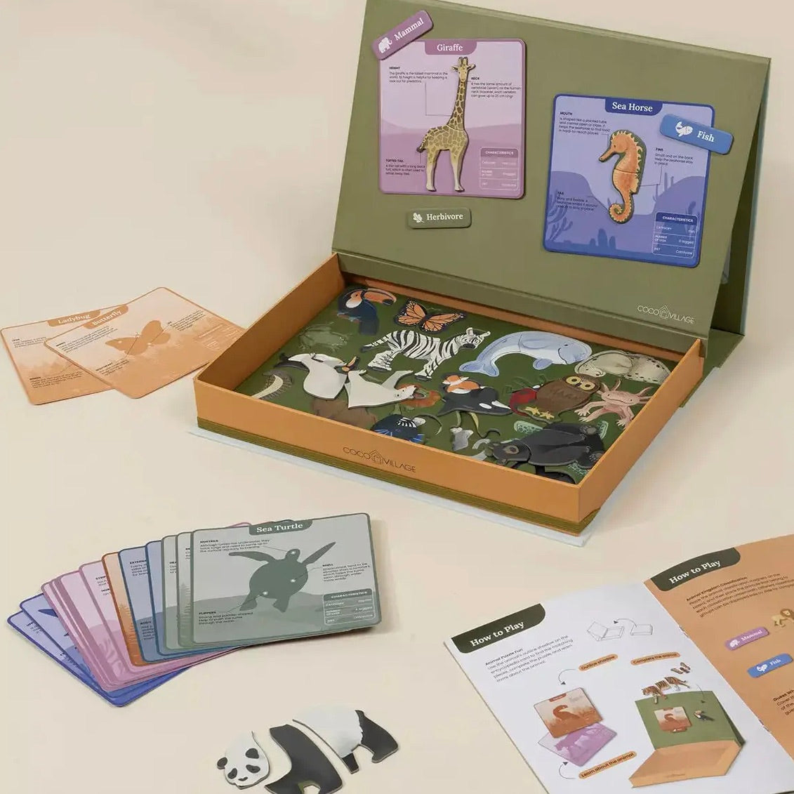 Animal Discovery is and ideal home study tool for children to learn about the animal kingdom. Each animal is broken down into magnetic puzzle pieces according to its features to discover. The informational encyclopedia cards encompass fun facts about animal names, outlines, features, habitats, classifications, feeding habits, number of legs, body parts, and functions, and help the learner to build up more knowledge. This highly educational set sparks a lot if animals in children while develops their cognition of the natural world in an entertaining and interactive way.