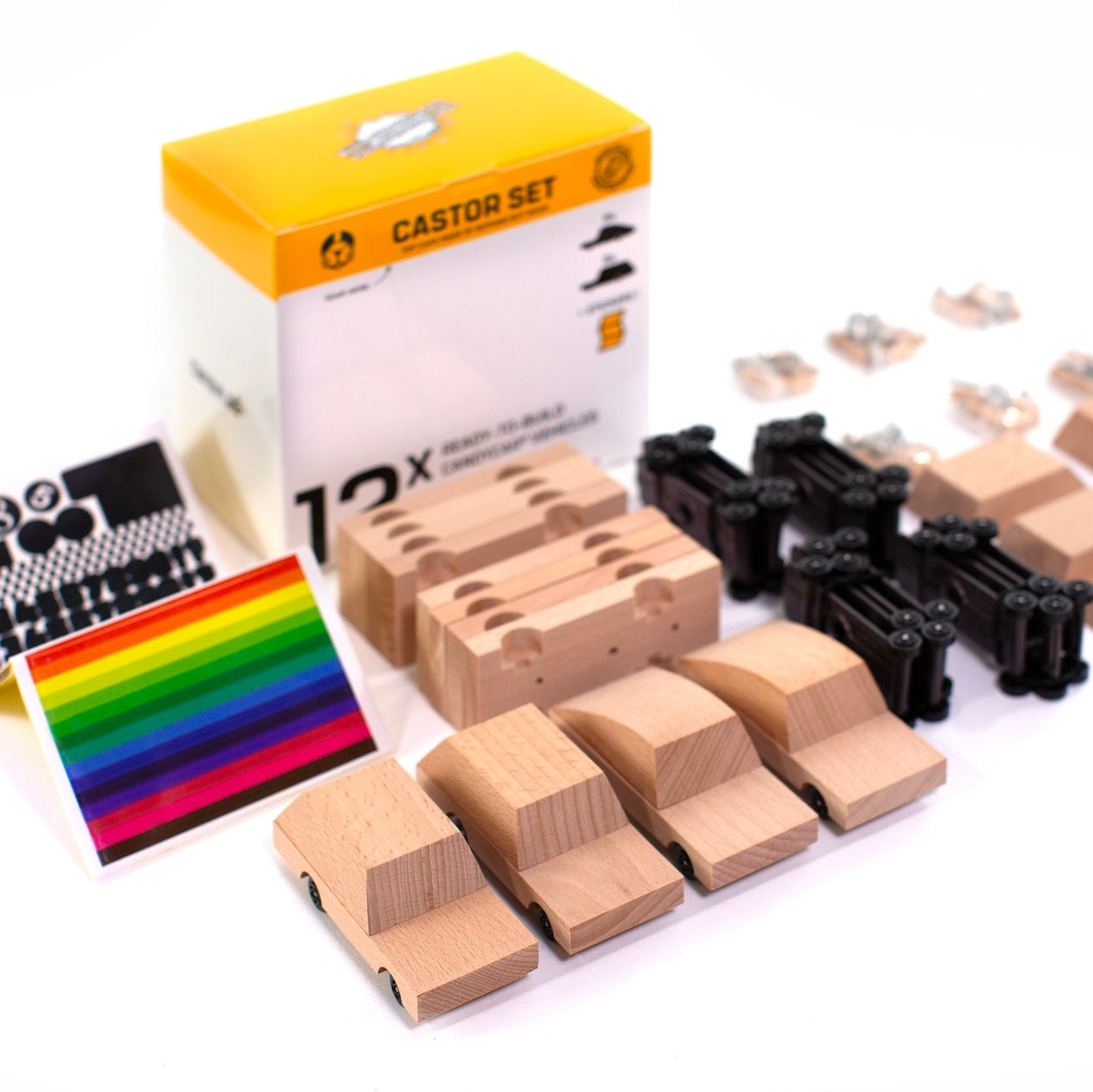 This awesome DIY kit has everything you need to build 12 of your very own CANDYCAR® vehicles! With just a dowel and a screw, put together your car and decorate to your liking using stickers, paint, or markers.