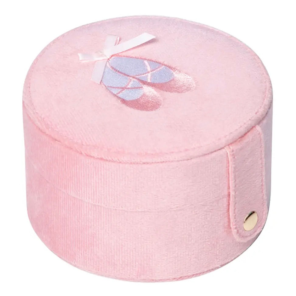 This lovely velvet jewelry box is the perfect place to keep all your Rockahula jewelry and favourite treasures safe! Featuring an embroidered pair of pink ballet slippers with satin ribbon detail, this jewelry box opens to reveal three compartments, a slip pocket and a dedicated space to slot earrings and rings. Lined with our starry fabric.