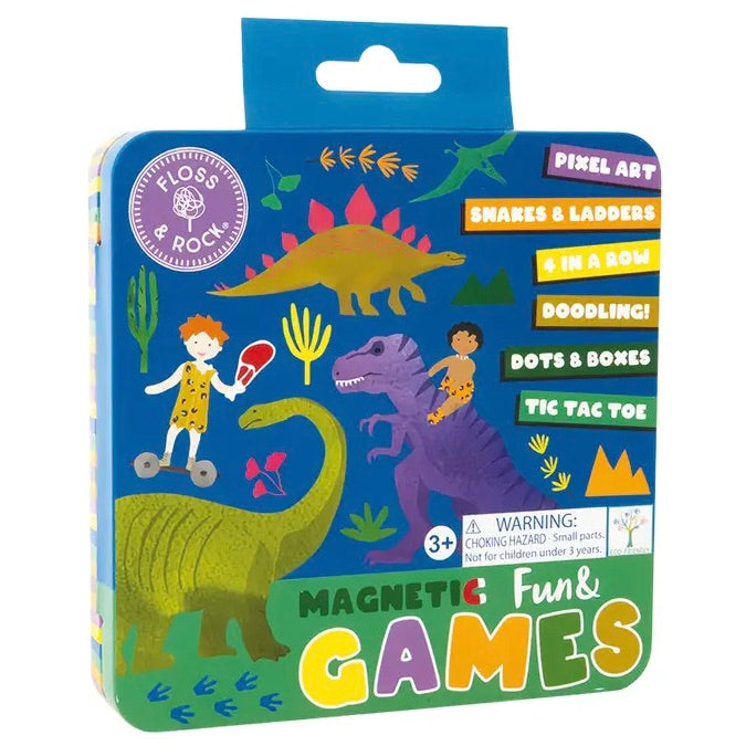 Our all new Magnetic Fun & Games Tin is packed with even more fun for on the go. Discover 6 activities and games - ‘Snakes & Ladders’, ‘Tic Tac Toe’, ‘Pixel Art’, ‘4 in a Row’, ‘Dots & Boxes’ and a doodle page! Each tin is reusable and comes with magnetic pop-out pieces, 3 colour dry wipe pens with erasers and a dice for game play! Our Dinosaur design is simply ROAR-some, especially for dino lovers!