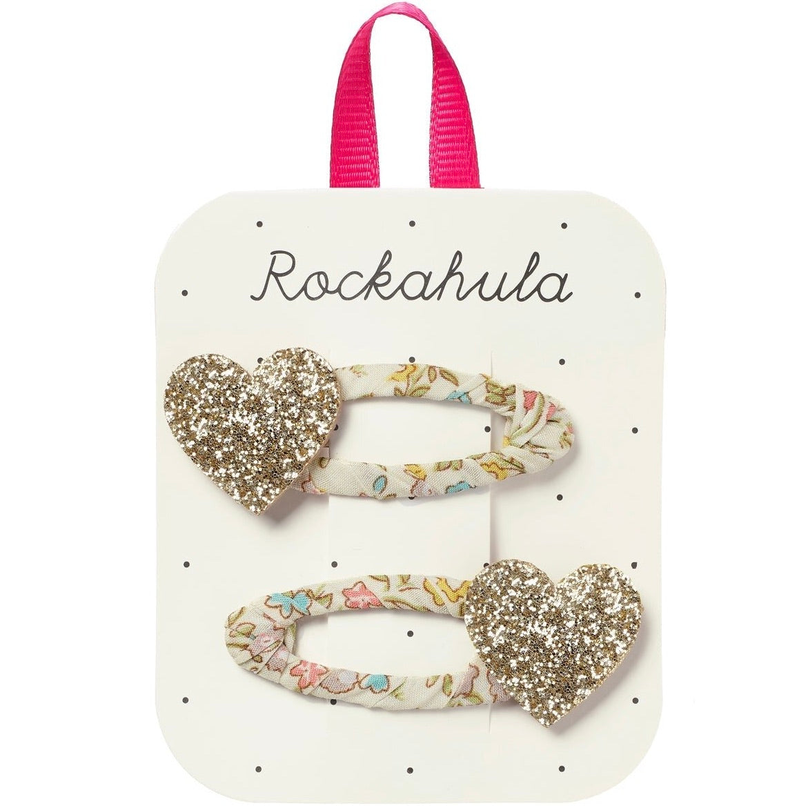 A pack of two glittery gold hearts, set upon our pretty pastel ribbon wrapped snap clips. These glittery heart shaped clips are gorgeous in every way!