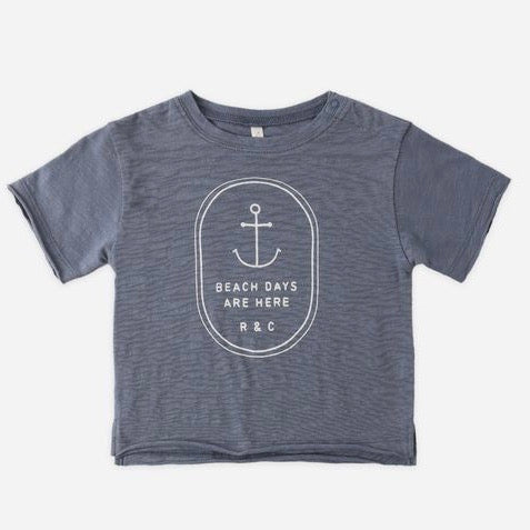 This comfortable tee is made from our cotton slub fabric with a raw finish hemline for an edgy flare. Shoulder snaps included in sizes 0-3m - 18-24m for easy dressing.