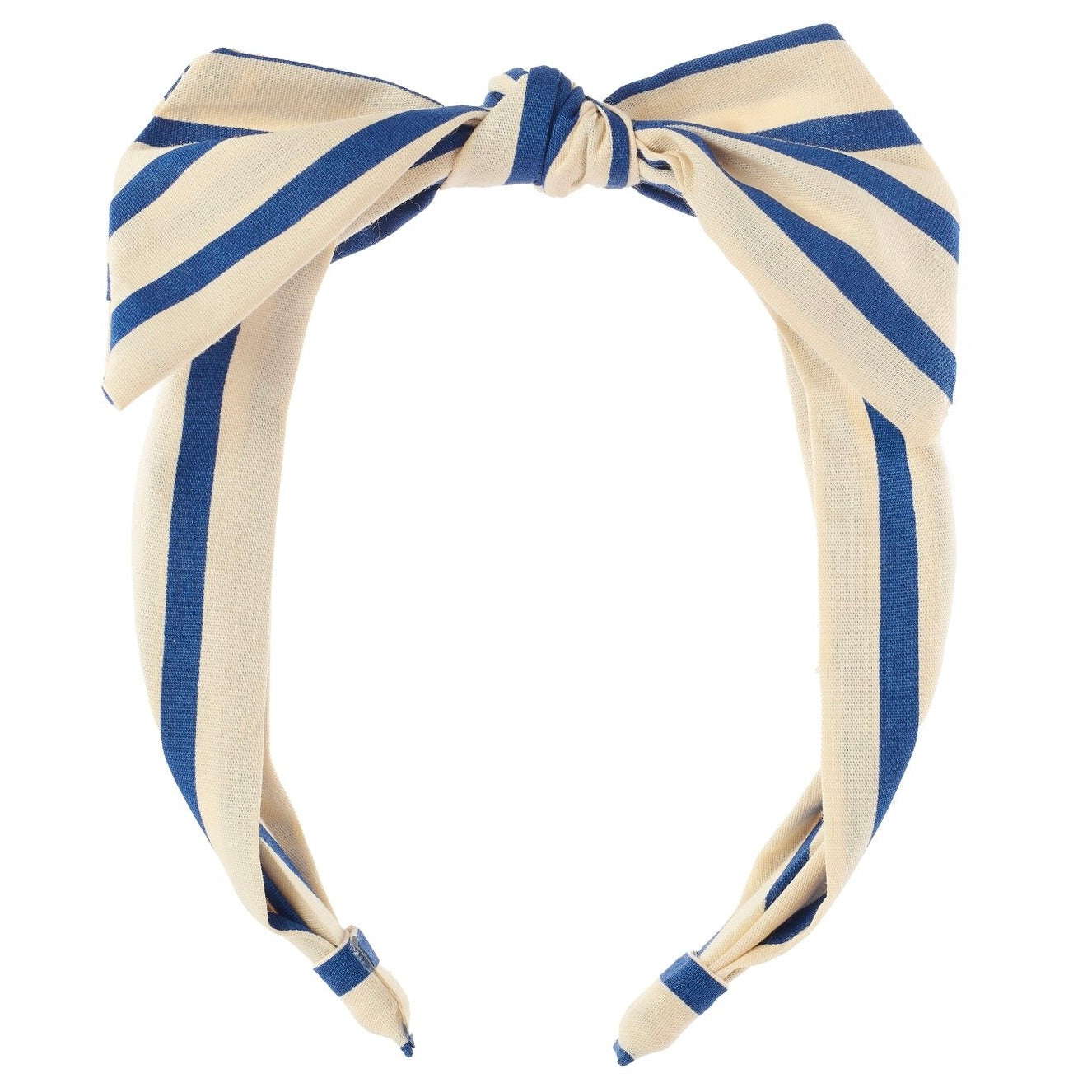 Our stripy Riviera head band is made in the softest woven blue and neutral striped fabric, featuring a hand tied bow and designed to provide a comfortable fit for little heads!