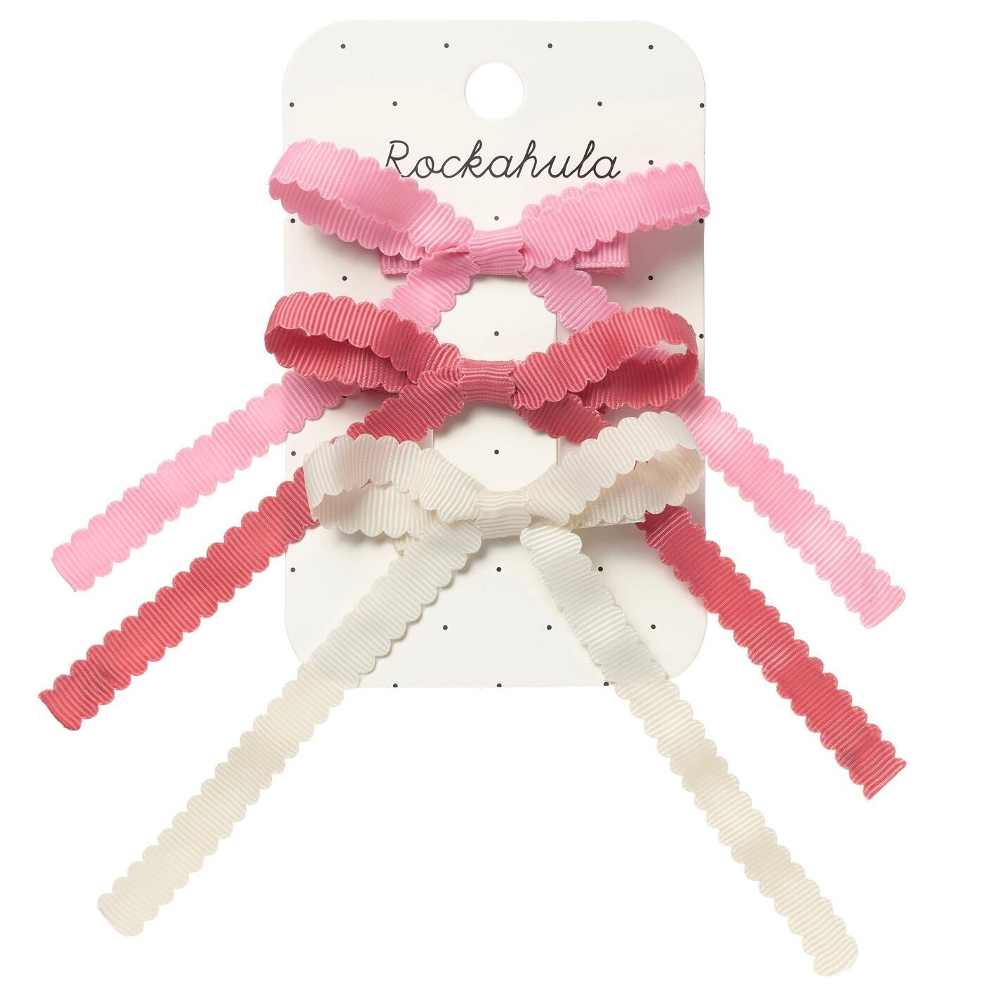 Our trio of scalloped ribbon bows are the perfect adition to any hairstyle. Three cute complimentary shades to wear seperate or together!