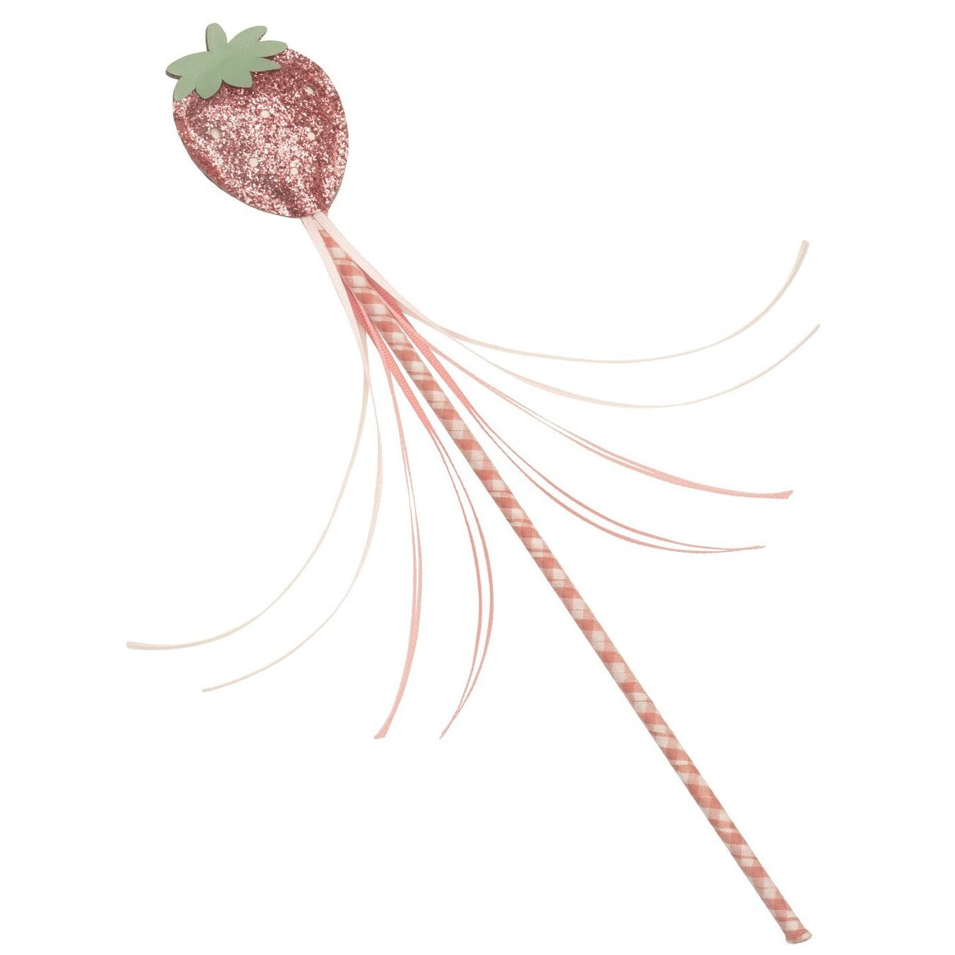 Wave this sweet strawberry wand and spread some magic anywhere you go! With our sweet pink glitter strawberry, a stripy fabric wrapped centre stem and pastel coloured grosgrain streamers - it is just perfect for adventures, imaginative play, or a fun addition to the dressing up box.