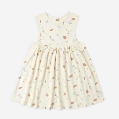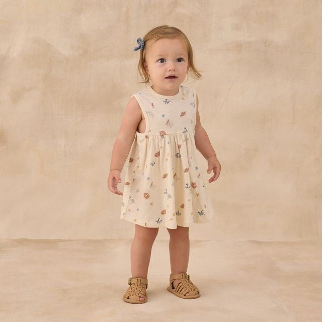 Sleeveless babydoll dress made from soft cotton jersey, featuring a gathered skirt and buttons at the back neck.