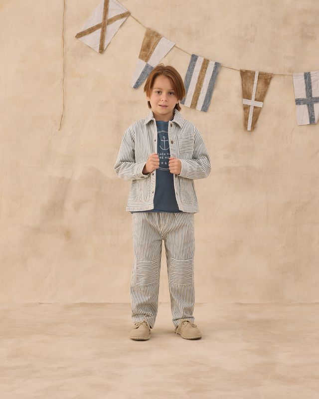 Featuring our 'railroad stripe' print on our 'natural' denim.