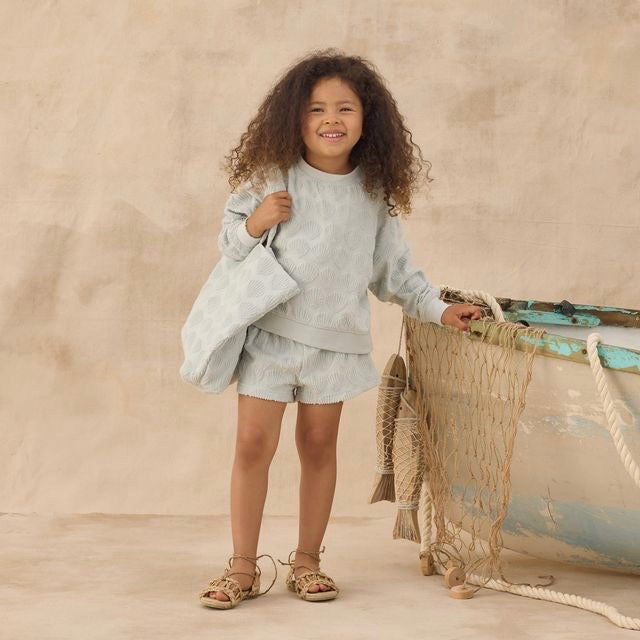Featuring our ‘seashell terry' print on our 'seafoam' hue. This coastal look is ready for summer!