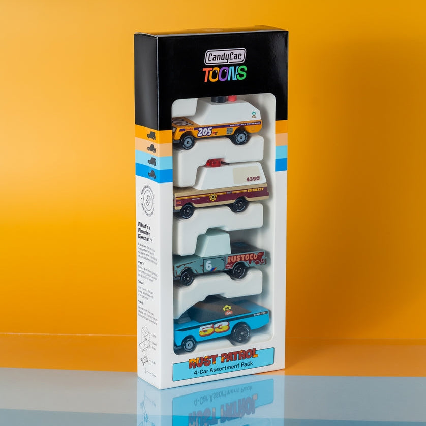 Small cars. Big attitudes. CANDYCAR® TOONS™ is a fresh fleet of sturdier, more colorful, and more affordable toy cars. Still wooden. Still diecast. Still awesome. Ages 3+.