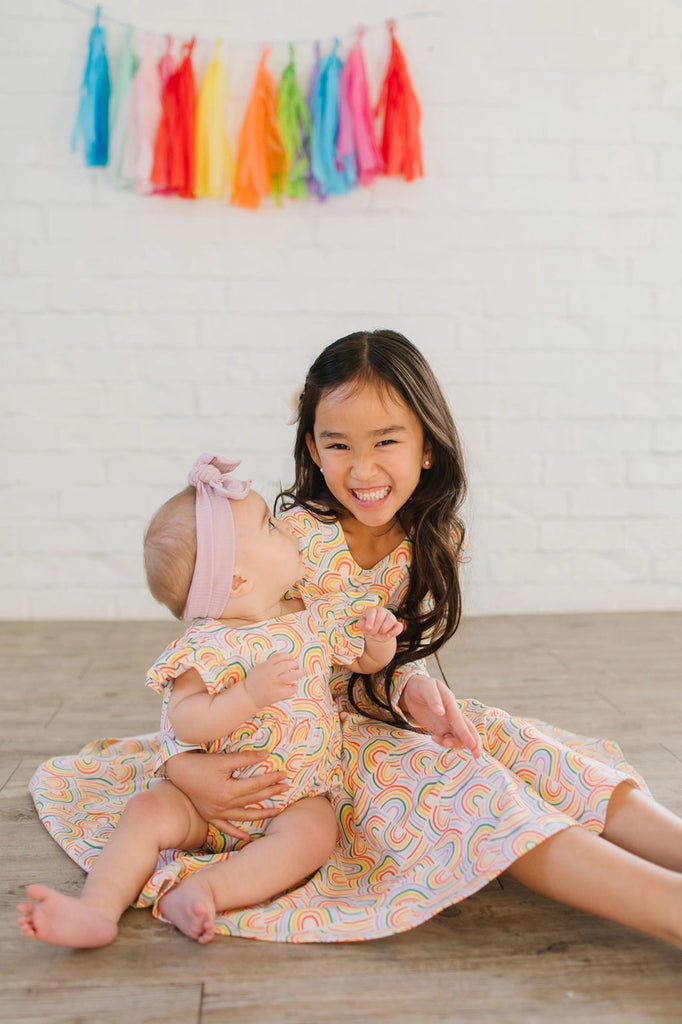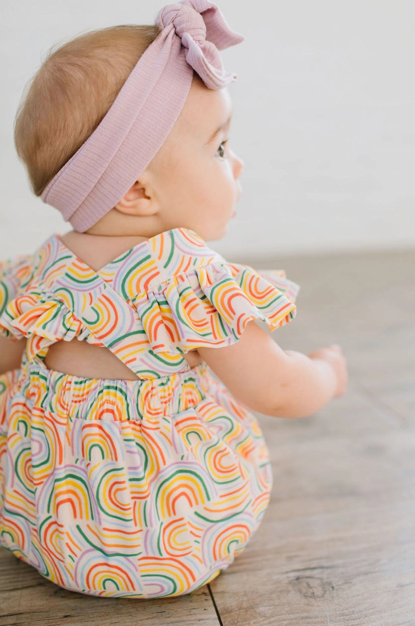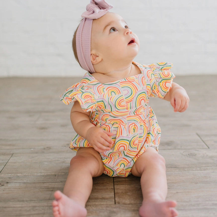 The Emmy Romper is super soft and stretchy for little ones who love to move! Featuring ruffled details along the shoulders and down the back, as well as adjustable straps for growing babes. A 3 snap closure makes for easy diaper changes.