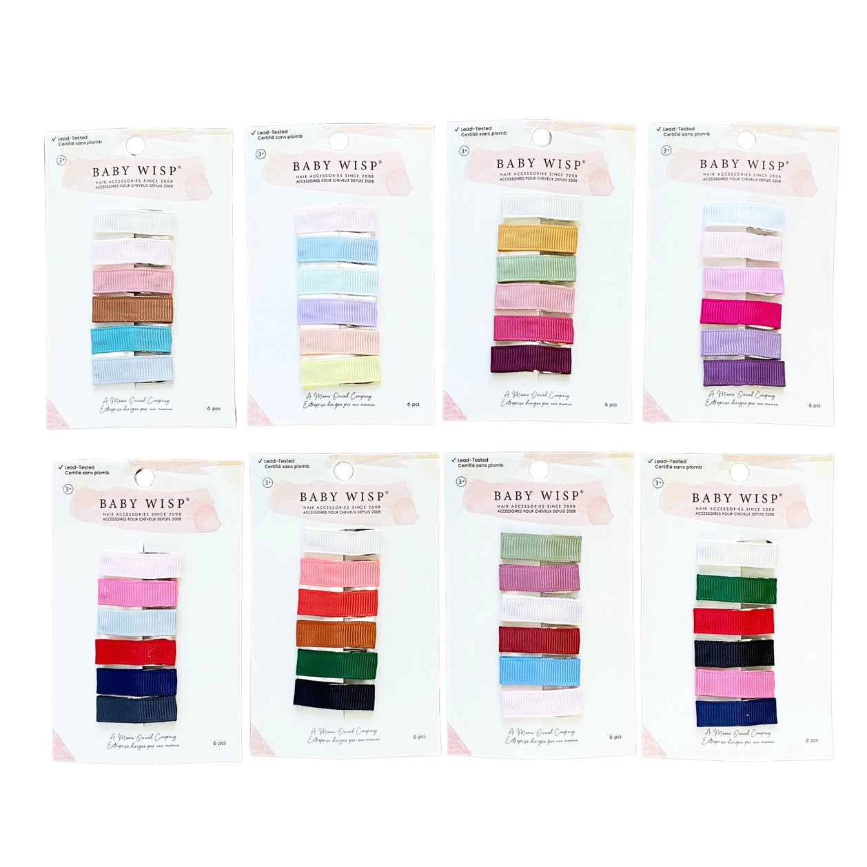 Ribbon lined small snap clips are about 30 mm long. Lead-tested stainless steel clips that slide in and snap shut like barrettes. We only use non-toxic glues and all our edges are heat sealed to prevent fraying. Looks best on ages 3 to 24 months.